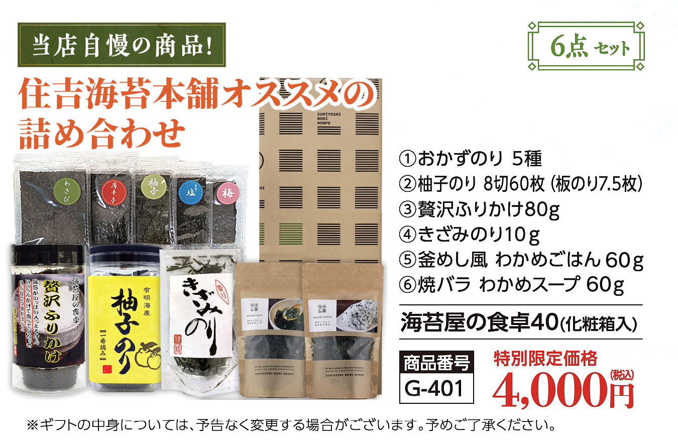 商品名:海苔屋の食卓40 (化粧箱入) [G-401]