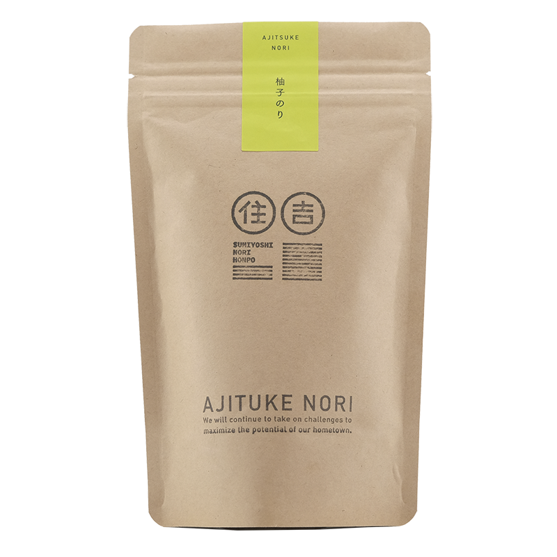 香り良い華やかなゆずの風味と、唐辛子のぴりりとしたアクセントが、住吉海苔本舗の「秘伝のタレ」で味付けした海苔ととても良く合います!